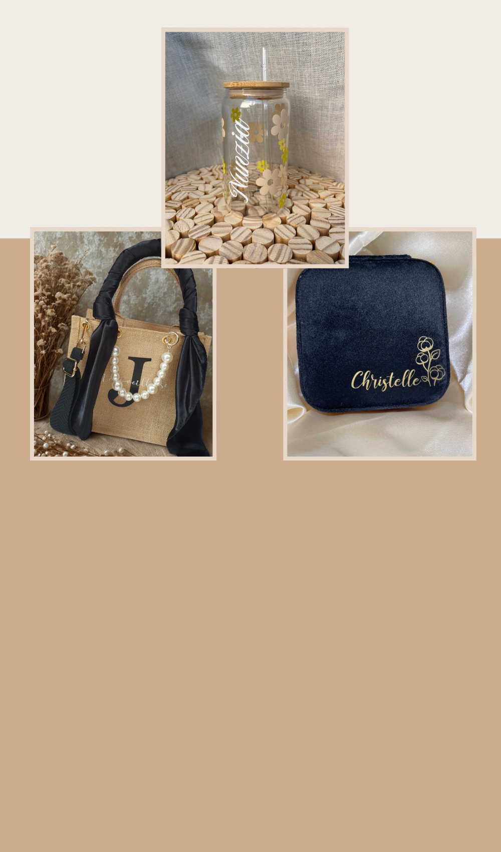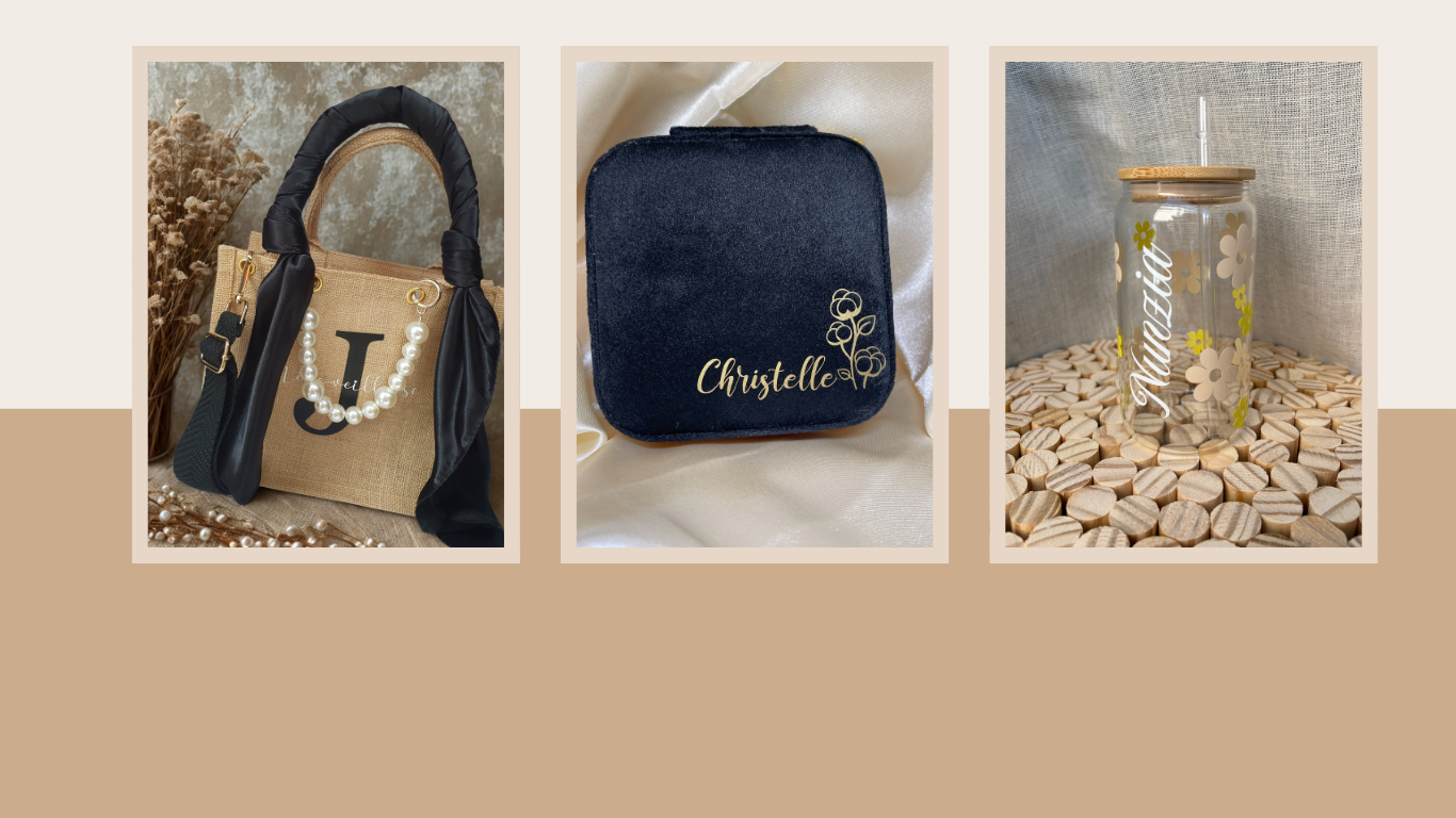 Apportez une touche personnelle à votre quotidien avec nos articles uniques et personnalisés. Chaque produit est conçu pour refléter votre style et vos goûts, rendant chaque moment encore plus spécial. Que ce soit pour un cadeau ou pour vous-même, nos créations ajoutent une dimension authentique et mémorable à votre vie. Faites de chaque détail un reflet de votre personnalité !