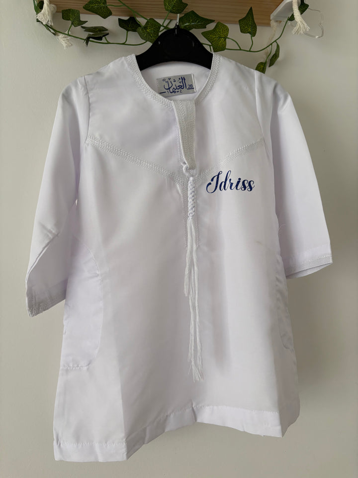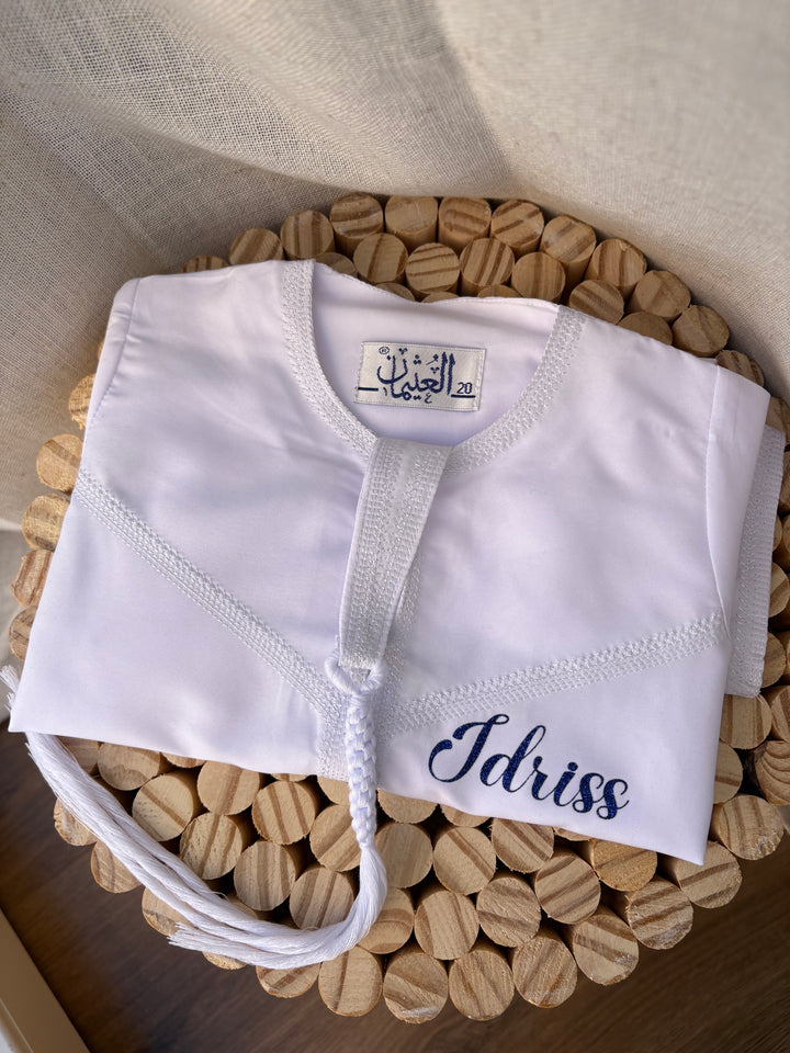 Ajoutez une touche de tradition et de sophistication à la garde-robe de votre bébé avec notre qamis personnalisé. Commandez dès aujourd'hui et créez des souvenirs inoubliables pour votre tout-petit !